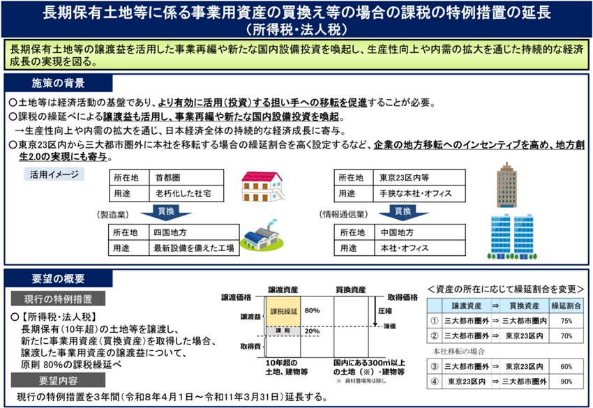 - 11.特定の資産の買換えの場合等の課税の特例の見直しと延長(大綱P110-111)