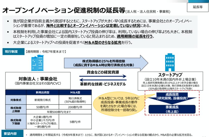 - 6.オープンイノベーション促進税制の見直しと延長(大綱P95-97)